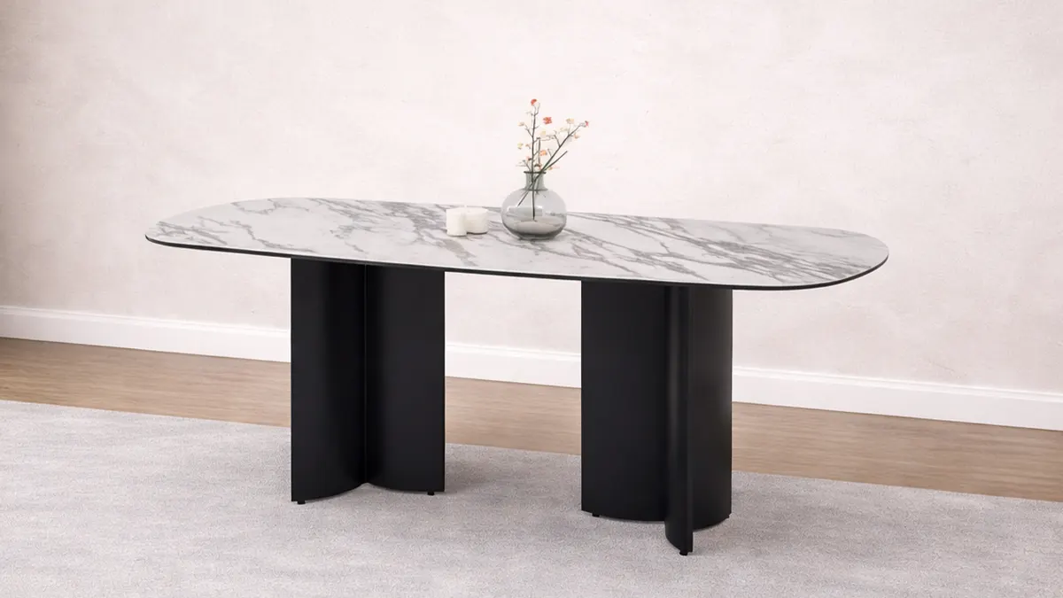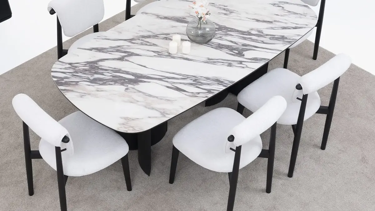 • Trpezarijski sto sa pločom u dekoru belog mermera za luksuzan izgled